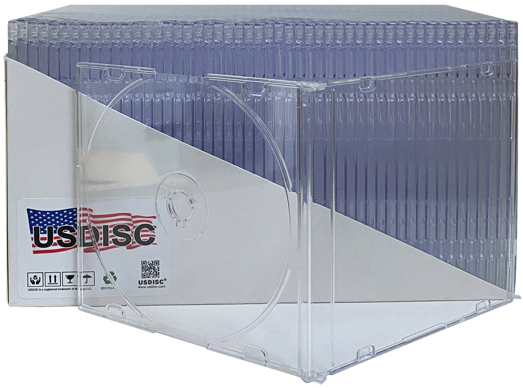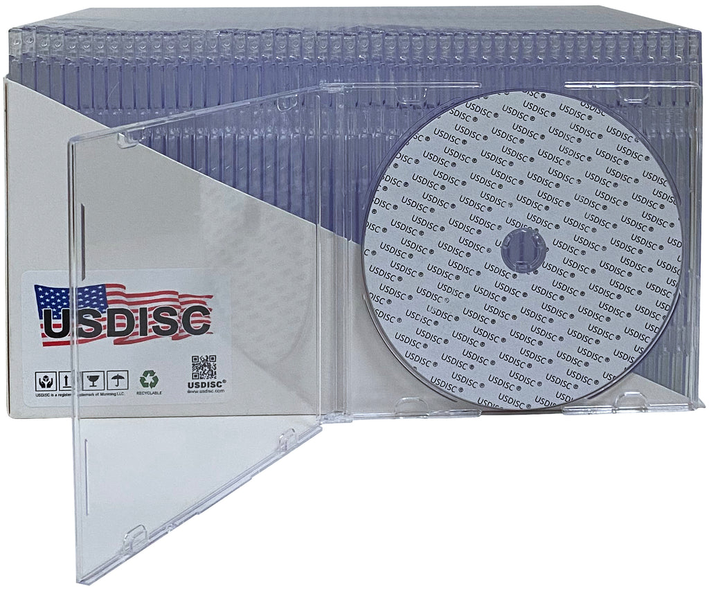USDISC CD Jewel Cases Slimline 5.2mm, Single 1 Disc, Super Clear