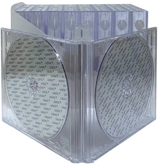 This Quad-disc Jewel Case features an extra wide spine that is the same width as two standard jewel cases side by side. Includes clear tray with center hub to secure discs during storage or transit. Holds up to 4 full size discs.