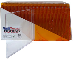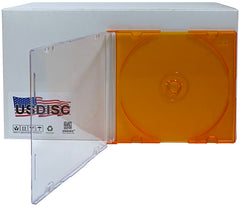 USDISC CD Jewel Cases Slimline 5.2mm, Single 1 Disc, Clear Orange