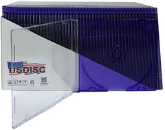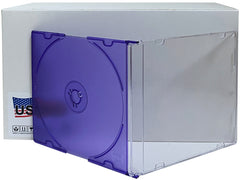 USDISC CD Jewel Cases Slimline 5.2mm, Single 1 Disc, Clear Purple