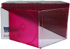 USDISC CD Jewel Cases Slimline 5.2mm, Single 1 Disc, Clear Red